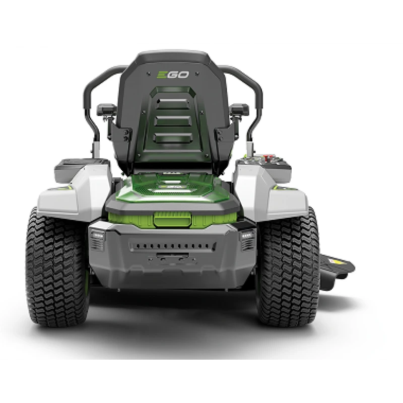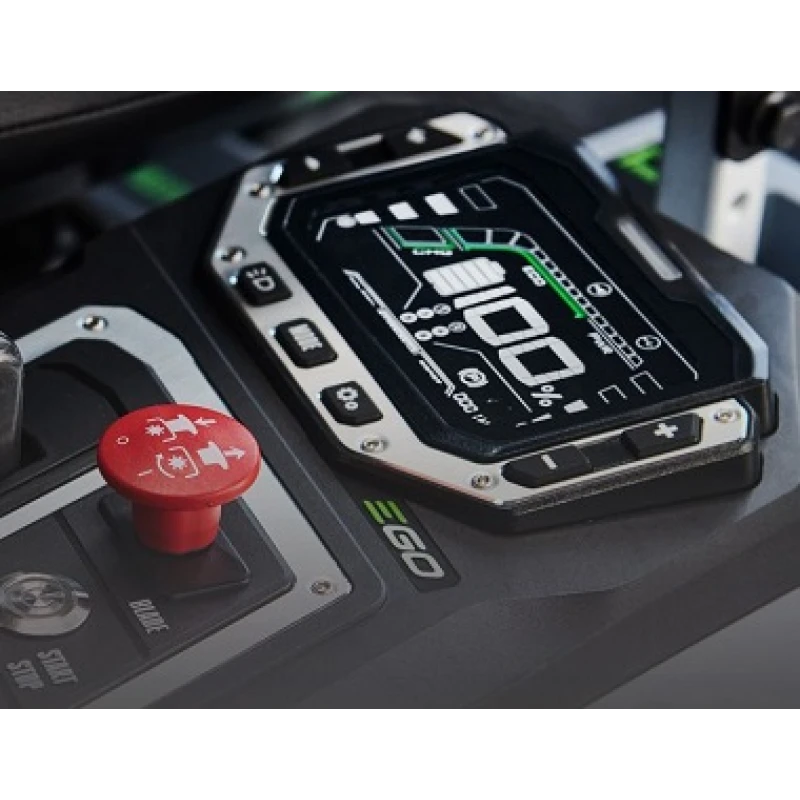 GO Z6 Zero-turn zitmaaier. Deze zitmaaier wordt aangedreven door de standaard EGO’s 56V accu’s. De Z6 biedt is standaard uitgerust met snelste multipoort lader op de markt die ruimte biedt aan 6 accu’s. Het maakt niet uit welke combinatie van accu’s u in de maaier stopt, zolang deze tezamen minimaal 15 Ah zijn. De Z6 zero turn zitmaaier is ongekend sterk en heeft een vermogen gelijk aan een brandstofmotor van 22pk. Omdat de Z6 volledig wordt aangedreven op accu’s, veroorzaakt deze geen schadelijke uitstoot. Met de Z6 zero turn zitmaaier kan een oppervlakte tot 10.000 m2 worden gemaait met 6 accu’s van 12Ah. Met 4 krachtige borstelloze motoren biedt de Z6 vergelijkbare of zelfs betere prestaties als een brandstof aangedreven variant. De zitmaaier behaalt een topsnelheid van 12 km/uur en maait tot 10.000 m2. De Z6 zitmaaier beschikt over een intuïtief lcd-scherm waarmee de snelheid, de maaimodus en maaisnelheid geregeld kunnen worden. Ook geeft het scherm exact aan hoeveel stroom de accu’s nog bevatten. De Z6 zero turn kan ingesteld worden in de standaard-modus voor dagelijkse taken, de Control-modus die perfect is voor nieuwe zero-turn gebruikers en de ondergrond beschermt en de sport-modus voor precies maaiwerk en scherpe bochten en hoeken. De zitmaaier kan worden ingesteld op 10 maaihoogtes tussen 2,5 en 10 cm. Met de ergonomische handgrepen kunt u de maai-instellingen gemakkelijk aanpassen. U kunt mulchen, het maaisel in de zak opvangen of zijwaarts uitwerpen tijdens het maaien, zodat u niet alleen de gewenste maairesultaten behaalt maar het maaisel verwerkt zoals u wilt. (Opvangzak apart verkocht.) Ook is de Z6 voorzien van 32 high-intensity ledlampen voor extra verlichting van uw maaioppervlak wanneer de omstandigheden niet ideaal zijn, een handige bekerhouder en een opbergvak en plekje voor uw mobiele telefoon die u ook kunt laden tijdens het maaien dankzij de USB-poort. Met de 1.600W snellader, die standaard wordt meegeleverd, heeft u beschikking over de snelste acculader in de sector. Deze acculader heeft tot wel 4 maal snellere laadtijden dan concurrerende modellen. Inclusief 1.600W snellader en mulchplug. Deze elektrische zitmaaier wordt geleverd met drie 12 Ah accu’s.