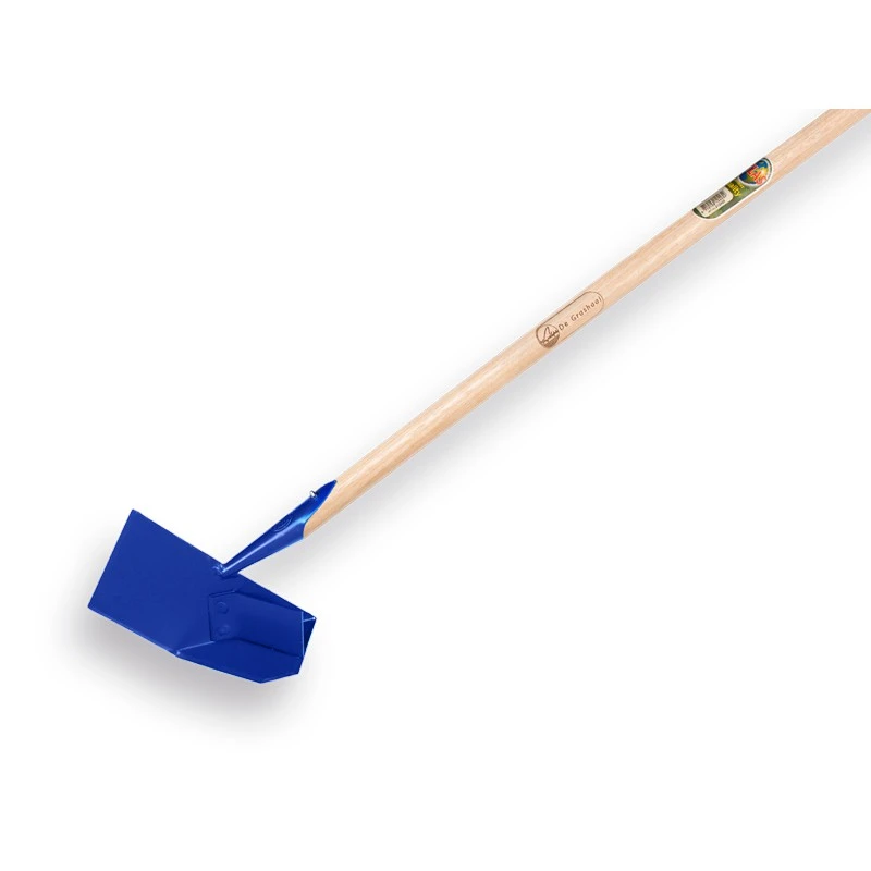 “De Grashaai” heeft een afvoerstrip waarmee het gras of de grond opzij geschoven wordt. “De Grashaai” is voorzien van een ijzersterke “Atlas” steel en afgewerkt met een hilt om meer kracht te kunnen zetten. Je kunt er heel precies mee snijden. Zowel rechts- als linkshandig uitvoering verkrijgbaar.