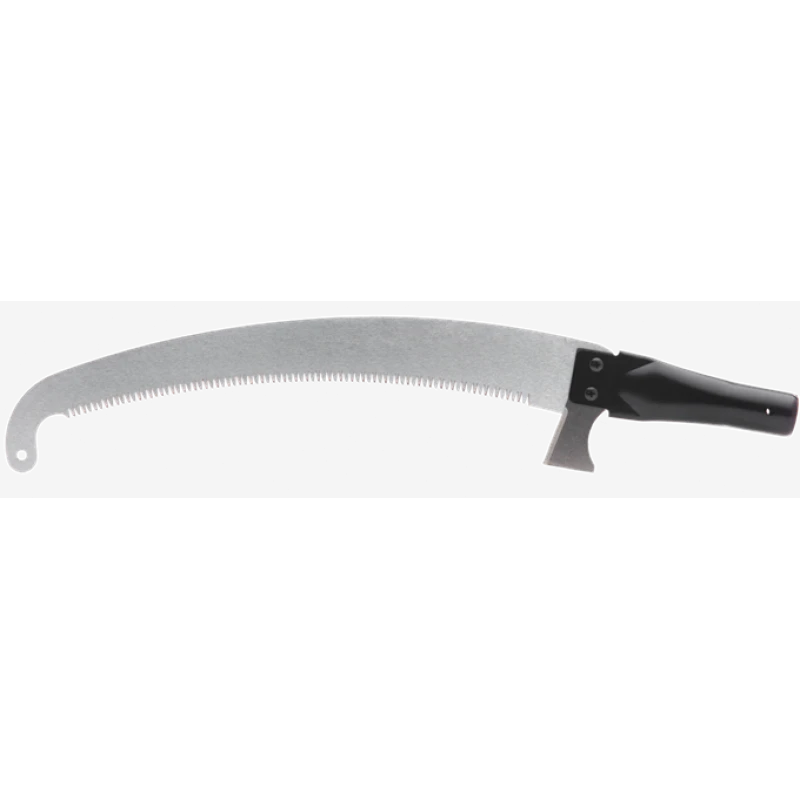 Gebogen blad met een haak aan het uiteinde om splijten van de schors te voorkomen.