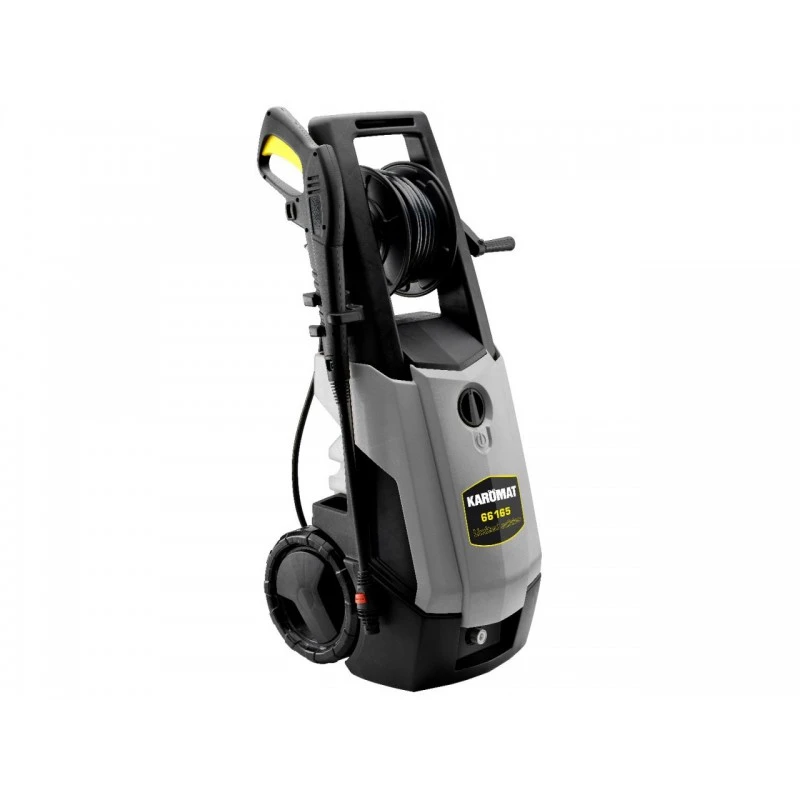 De Karömat 165B is een krachtige en veelzijdige hogedrukreiniger. De hogedrukreiniger is voorzien van diverse accessoires, zoals 8 meter waterslang, een lans, terrasreiniger en roterende borstels. Zo kan jij snel en eenvoudig de klus uitvoeren. Denkend aan autowassen, het terras reinigen of eventueel het hok schoonspuiten. Met de ingebouwde slanghaspel kun je een heel eind komen zonder de hogedrukreiniger te verplaatsen.