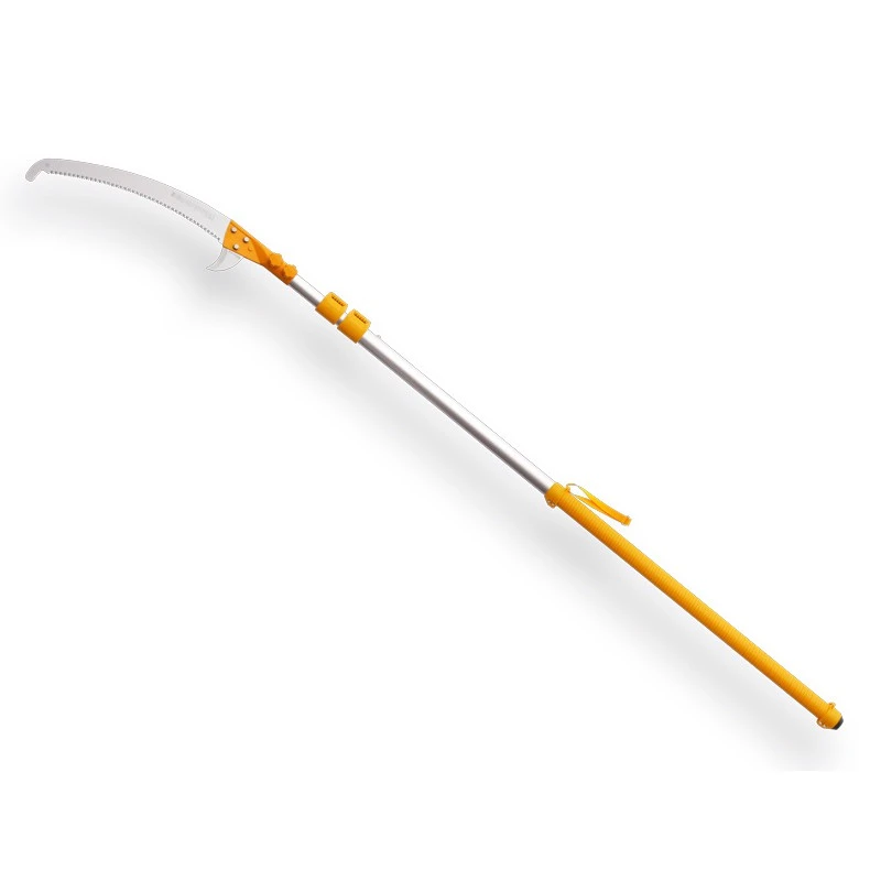Silky stokzaag Hayate 5000-6.5 3 delig uitschuifbaar tot 5m + zaagblad en hoes. (Silky artikelnummer KSI 037142) Transsport/ingeschoven lengte: 2400 mm (incl. blad) Een echte heavy duty stokzaag. De Hayate heeft een zwaardere constructie dan de Hayauchi, wat deze telescopische stokzaag n—g robuuster maakt. Deze telescopische stokzaag van Silky is vlijmscherp, sterk, makkelijk in gebruik en licht van gewicht. Het 420mm lange gebogen blad van de Hayate is voorzien van SilkyÕs unieke Mirai-Me vertanding Deze laser uitgesneden tanden, met een kerf van 1.7mm, zorgen voor een flinke houtafname zodat u gemakkelijk en razendsnel de dikste takken doorzaagt zonder dat de zaag vast te komt te zitten. Het zaagblad is verchroomd, flexibel en alleen de vlijmscherpe tanden zijn impulsgehard. Twee messen (sikkels) zorgen samen voor een optimaal snoeiresultaat. Met het ondermes snijdt u de bast in, zodat deze niet langs de stam afscheurt als de tak valt. Het bovenmes voorkomt dat de zaag uit de zaagsnede raakt. En u kunt, met dit bovenmes, eenvoudig twijgjes van de stam wegsnijden of kleine (dode) takken mee uit de boom trekken. Door de ovale vorm van de aluminium stok staat het zaagblad in de juiste zaagrichting en geeft precieze controle tijdens het snoeien op hoogte. Tevens zorgt de ovale vorm van de steel voor kracht en stijfheid over de gehele lengte en wordt buigen tot een minimum beperkt.. De vergrendelmechanismes (drukknoppen en klemmen) geven samen de meest veilige en stabiele vergrendeling van de gewenste stoklengte. De klemmen van de steel en vastzetknop van het zaagblad met dul worden allebei in het verlengde van elkaar aan de bovenzijde van de telescoopsteel bevestigd. Het onderste stokdeel is omwikkeld met rubber voor een comfortabele en veilige grip. De stootbumper aan het uiteinde beschermt bij stoten of vallen. Het zaagblad maakt u het beste schoon met olijfolie. Hars lost op in olijfolie en dit is dan ook een effectieve en milieuvriendelijke manier om het blad te reinigen en de zaagcapaciteit te behouden. Tip: wanneer u de zaag niet gebruikt, maak deze dan goed droog voordat u stokdelen in elkaar schuift. Schuif de meegeleverde hoes over het gereinigde zaagblad en bewaar de stokzaag op een droge plaats. De Hayate stokzaag is verkrijgbaar in meerdere uitgeschoven lengtes (art.nr. 1540500, 1540510, 1540520). Zowel de losse stok als de losse zaag en onderdelen zijn leverbaar. De naam Hayate is een traditionele Japanse naam voor Ôharde windÕ. Dat is precies hoe deze zaag zich door de bomen beweegt! Snoeien op afstand vraagt om een betrouwbare en veelzijdige zaag. Silky zagen worden wereldwijd gebruikt door professionals en door kwaliteit liefhebbers. Geproduceerd in Japan sinds 1919 uit hoogwaardig SK-4 Carbonmetaal.