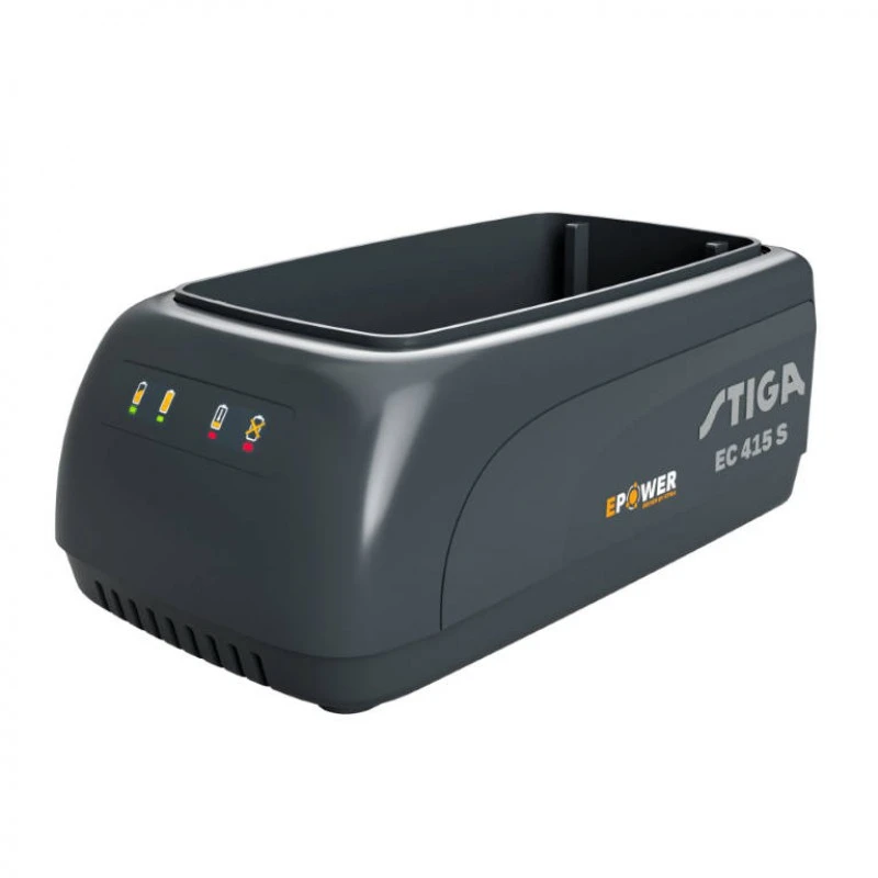 E-Power EC 415 S standaard oplader voor 1 accu, compatibel met alle 48V batterijen. Stroomuitvoer 1.5AH, standaard laadsnelheid en geschikt om 1 batterij op te laden. Uitgerust met EU stekker.